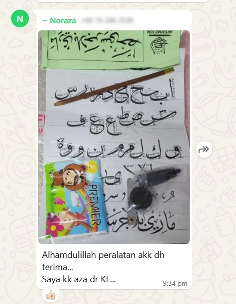 “Terima kasih Ustaz, saya kini lebih yakin menulis khat dengan teknik yang betul!”