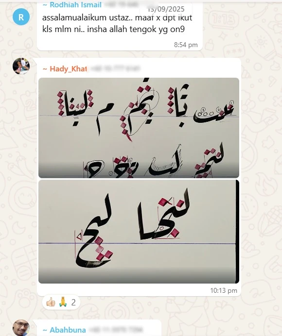 “Kelas khat Ustaz Arief sangat membantu – setiap teknik diajar dengan teliti dan mudah difahami!”